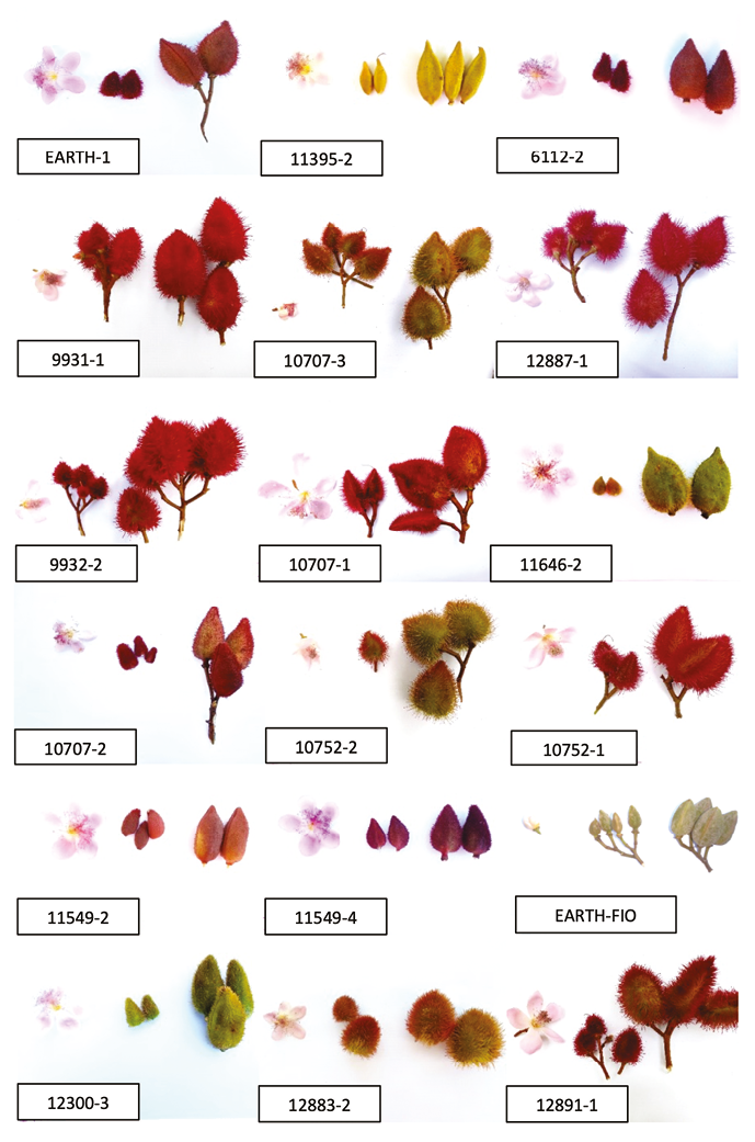 Figura 1. Diferencias fenotípicas entre las accesiones del Banco de Germoplasma de Achiote de la Universidad EARTH.