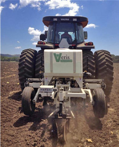 Con las diferentes partes del equipo Veris MSP3 es posible medir la conductividad eléctrica aparente (CEa) en dos profundidades (0 a 30 cm y 30 a 90 cm), reflectancia en dos anchos de banda, pH con el sensor antimonio y datos topográficos del terreno, además, todas sus mediciones se realizan mientras es remolcado por un tractor y georreferenciadas por un GPS interno.