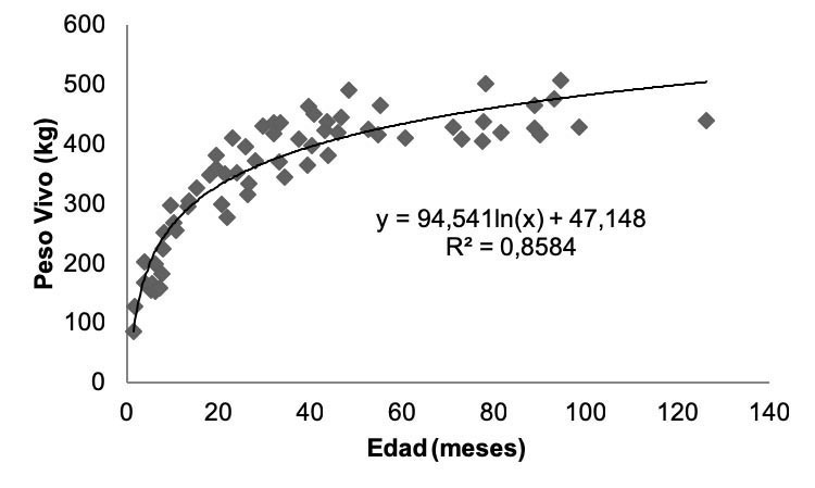 Como parte de los resultados, los modelos de predicción obtenidos se validaron en una población de veinte animales que no presentaban registro genealógico, con edades entre 5 a 180 meses. No se obtuvieron diferencias significativas (p>0,05), debido a que las diferencias del peso real de los animales tomado con balanza ganadera al calculado con la ecuación, fue de 0,62 kg cuando solo se usaron variables alométricas y, de 2,17 kg cuando se consideró la edad y la altura a la cruz.