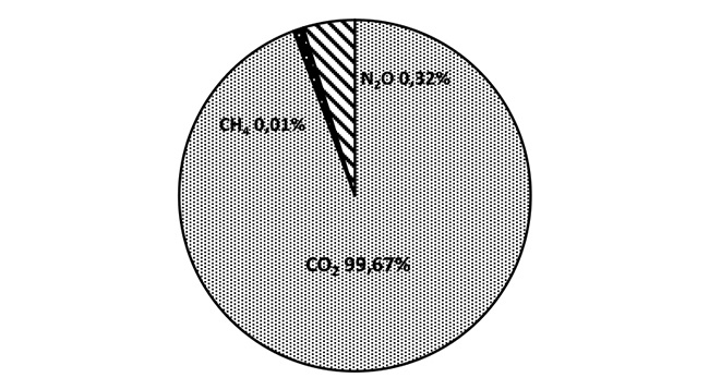 El CO2 contribuyó con el 99,7 % de los GEI totales del agroecosistema (Figura 6), seguido del óxido nitroso y metano, aunque el que genera mayor potencial de calentamiento global es el N2O, es común encontrar esta secuencia en varios suelos agrícolas.