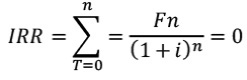 Equation 2. Internal rate of return (IRR), used to identify the profitability of the treatments (Mete, 2014).