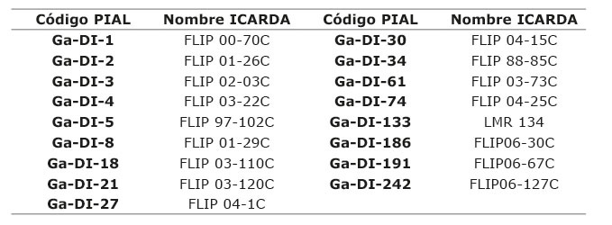Cuadro 4. Nomenclatura de los genotipos de garbanzo (Cicer arietinum), importados del International Center for Agricultural Research in the Dry Areas (ICARDA) evaluados y seleccionados por el Instituto Nacional de Ciencias Agrícolas (INCA)/ Proyecto de Innovación Agropecuaria Local (PIAL), durante los años del 2007 al 2013. Cuba.