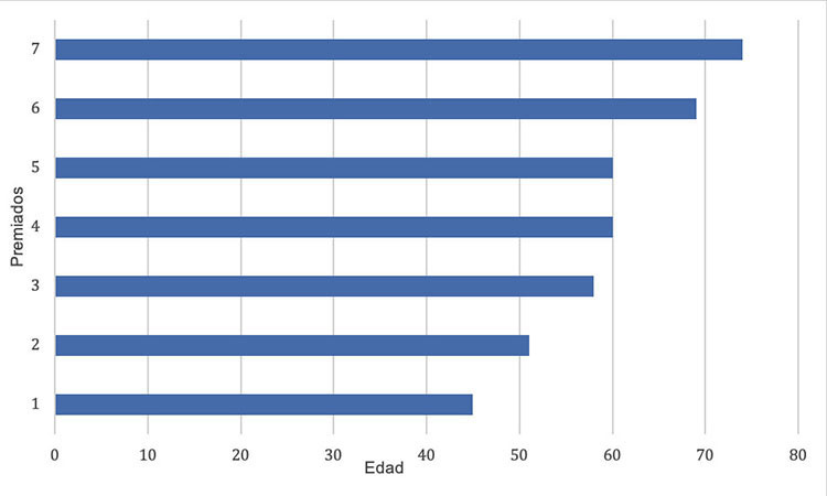 Figure 1. Ages of the awarded participants in the culinary festival of San José de las Lajas, Mayabeque, Cuba. 2017.