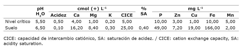 Table 1. Chemical analysis of the soil from Hacienda Mojica, used in both experiments. Fabio Baudrit Moreno Agricultural Experimental Station, Alajuela, Costa Rica. 2019.