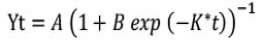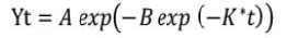 Donde, Yt: longitud en un tiempo t; A: estimativo del crecimiento máximo; B: parámetro de integración, no posee significado biológico; K: pendiente del modelo, el cual es interpretado como el cambio de la longitud en relación con el crecimiento máximo alcanzado.