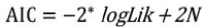 b. Criterio de información de Akaike (AIC) (ecuación 3) y criterio de información bayesiano (BIC) (ecuación 4), expresado mediante la fórmula: