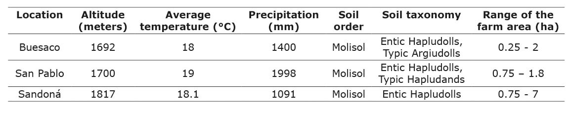 Table 1. Agroclimatic conditions of the localities Buesaco, San Pablo, and Sandoná, Nariño, Colombia. 2019 – 2020.