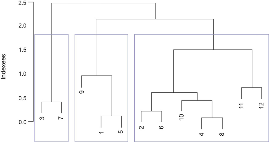 Figure 2. MCL dendrogram of the variables evaluated in the C. arabica production systems in the municipalities of Buesaco, Sandoná and San Pablo, Nariño, Colombia. 2019 - 2020.