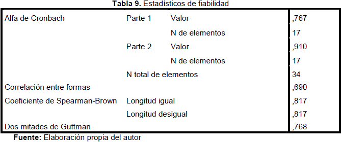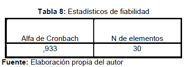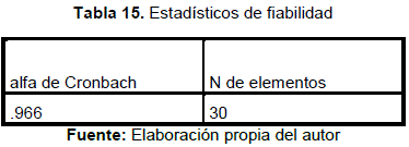 determinó mediante el Alfa de Cronbach donde se obtuvo un coeficiente