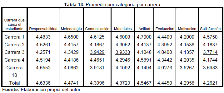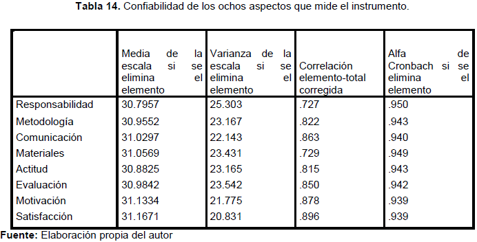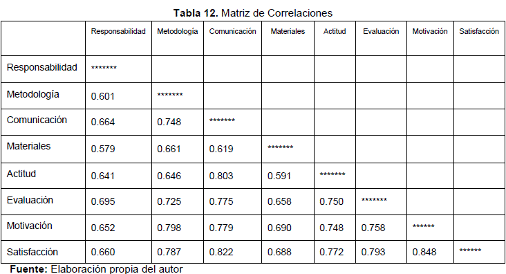 de 0.966. Dado que el desempeño docente es multidimensional, se