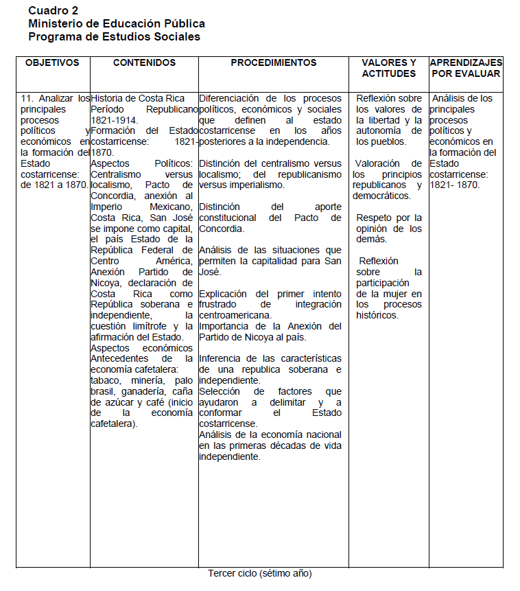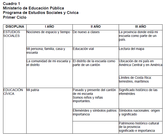 estudio de Estudios Sociales de primer y segundo ciclo. San José, Costa