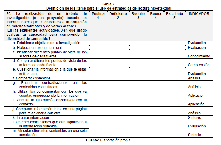 hipertextual de estudiantes universitarios. La metodología se encuentra