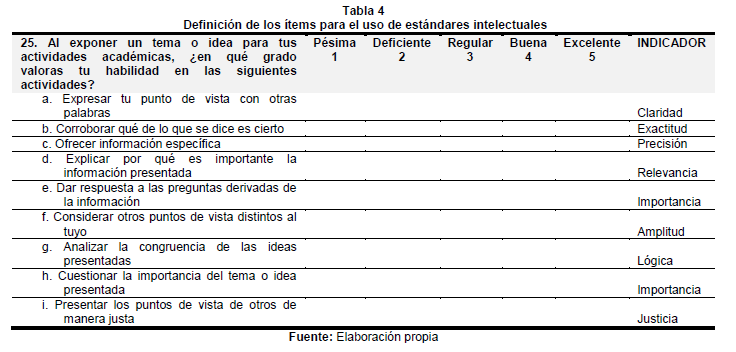 pensamiento crítico. Estándares, principios, desempeño, indicadores y