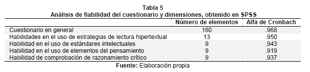 cuestionario tipo Likert que fue evaluado como fiable de acuerdo al