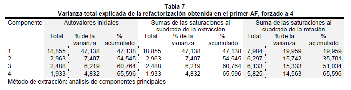 Alfa de Cronbach, y válido de acuerdo al análisis factorial. Los