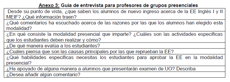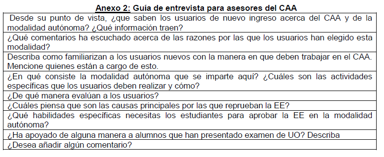 personal académico que participó en las entrevistas. Cabe mencionar que