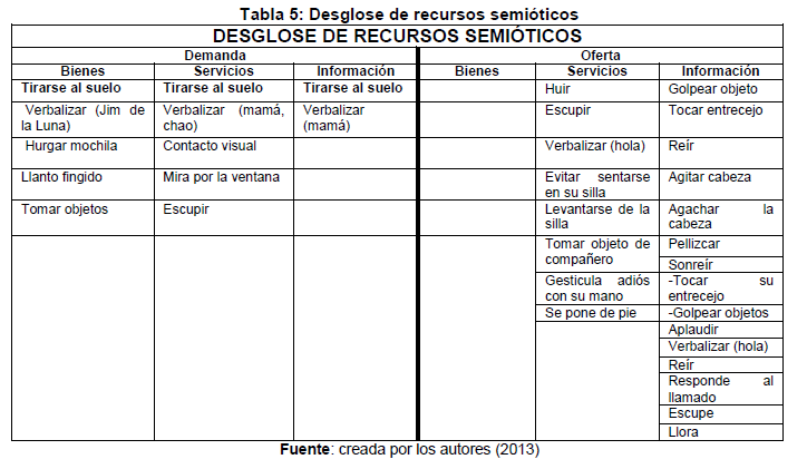 describe the semiotic resources being used by a student with autism