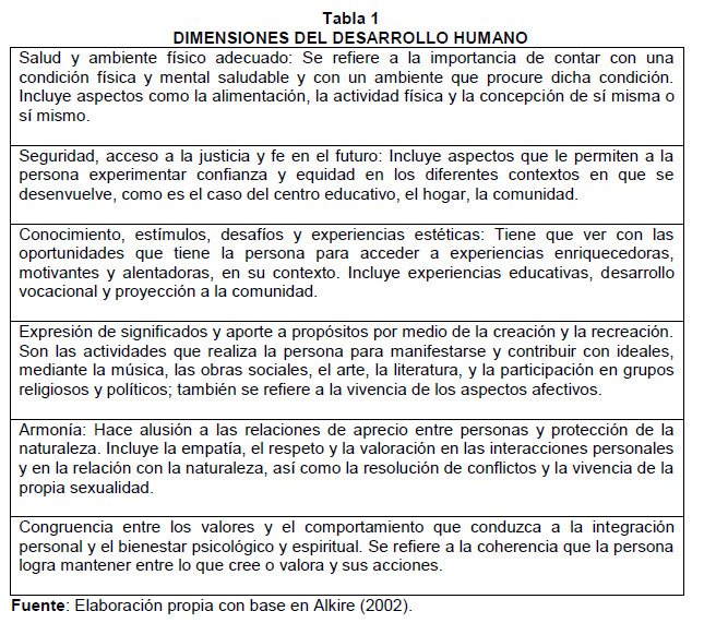 en las diferentes dimensiones del desarrollo personal, en qué están