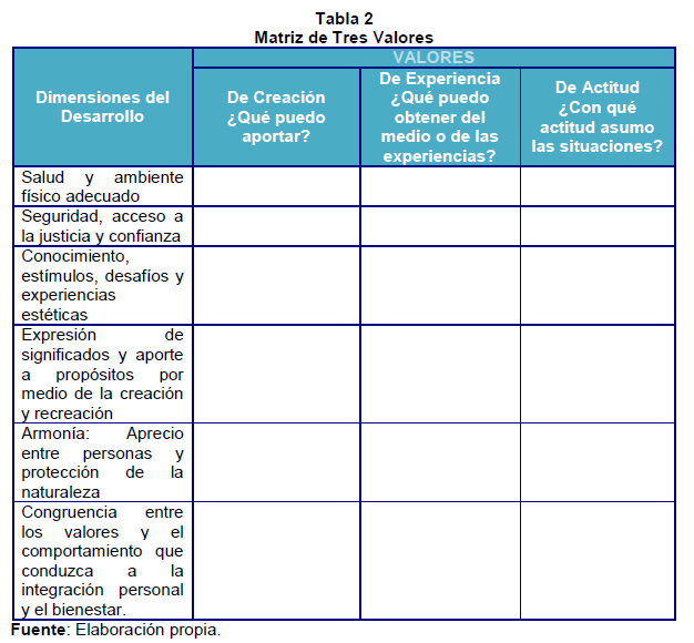 La Matriz de Tres Valores, es una guía para que los y las profesionales