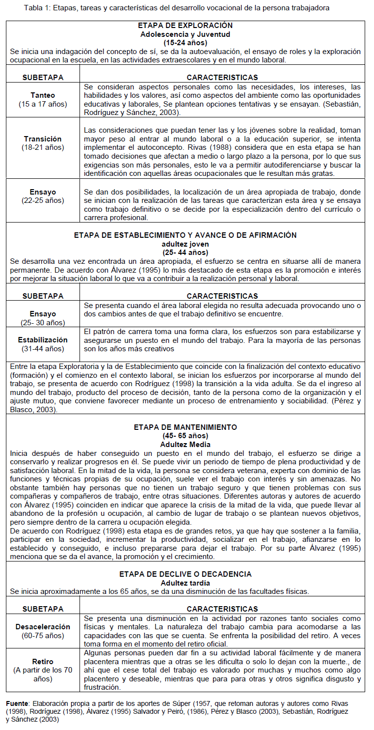 que ver con las etapas y tareas del desarrollo vocacional en la