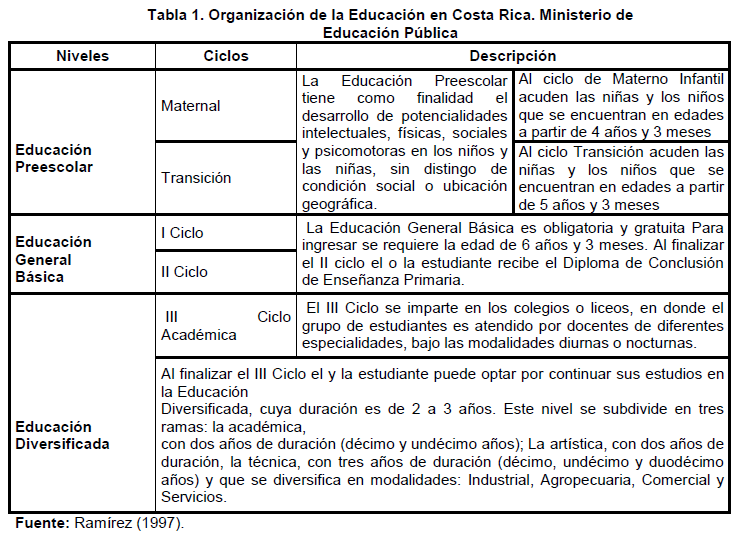 el cual se ubica este artículo, (Ministerio de Educación Pública, MEP