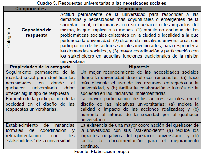 sociales del quehacer universitario y las respuestas universitarias a