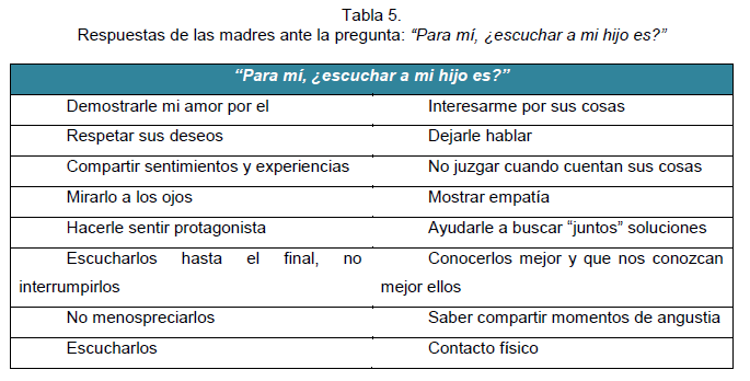 la escucha activa. Cuando preguntamos a las madres sobre el programa,