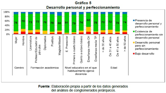 Los resultados indican que un grupo de docentes se ubica en un estado