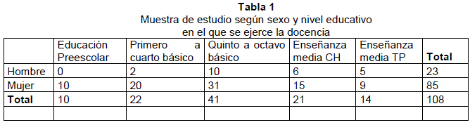 se constituyó de 108 docentes de pre-escolar, educación básica y media,