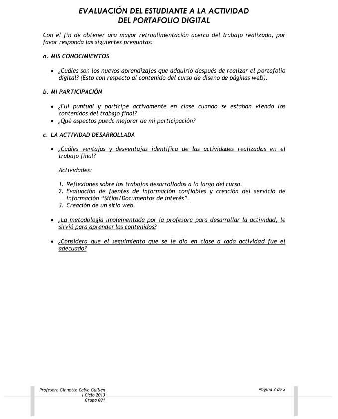 “redactar, diseñar y elaborar en línea su portafolio a través de una