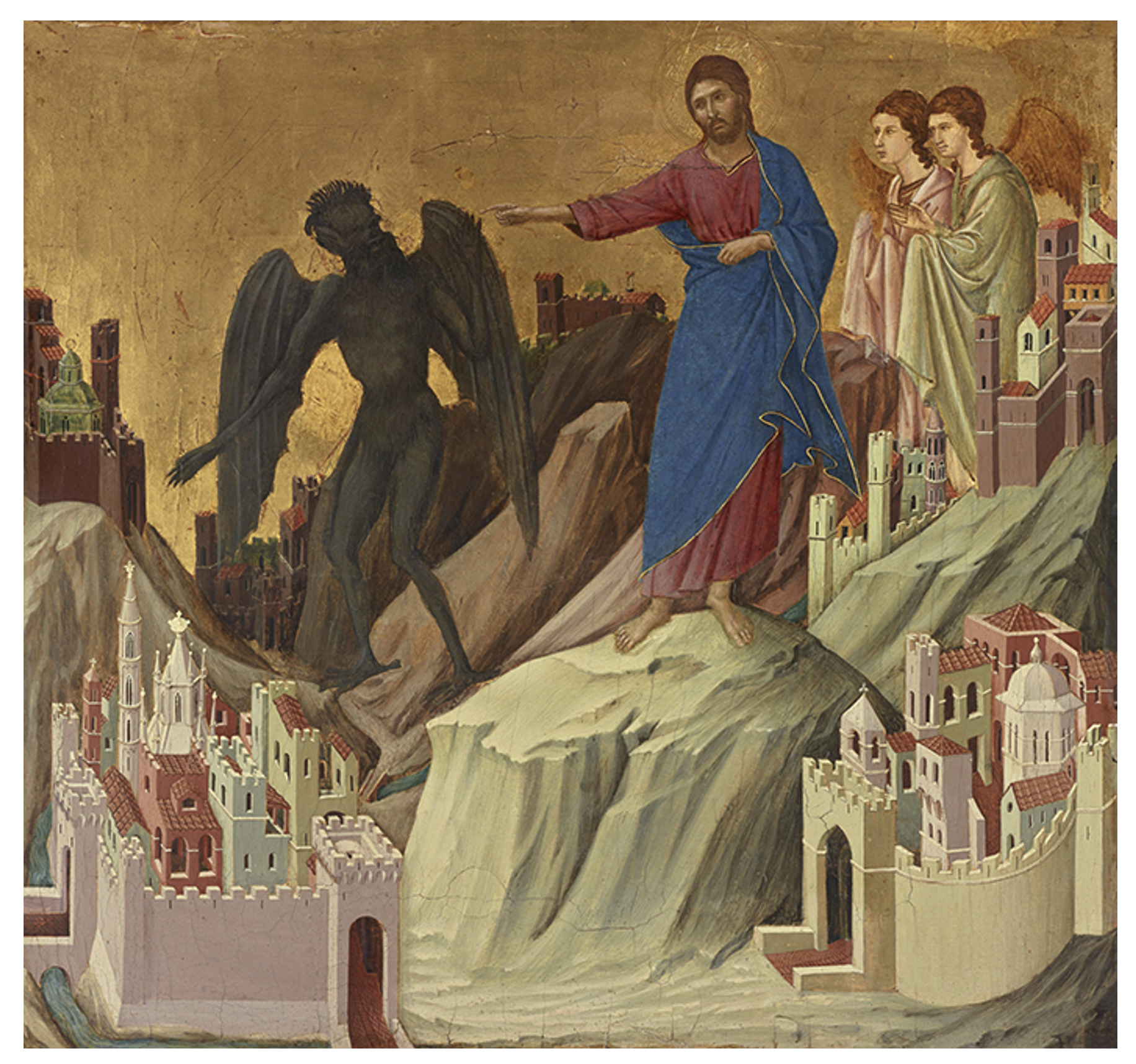 Figura 6: The Temptation of Christ on the Mountain (A Tentação de Cristo) - Duccio di Buoninsegna, c. 1308-11. Disponível em: https://artsandculture.google.com/asset/the-temptation-of-christ-on-the-mountain-duccio-di-buoninsegna/LAGcgFRm_8beXQ. Acesso em 01 de jul. 2024.