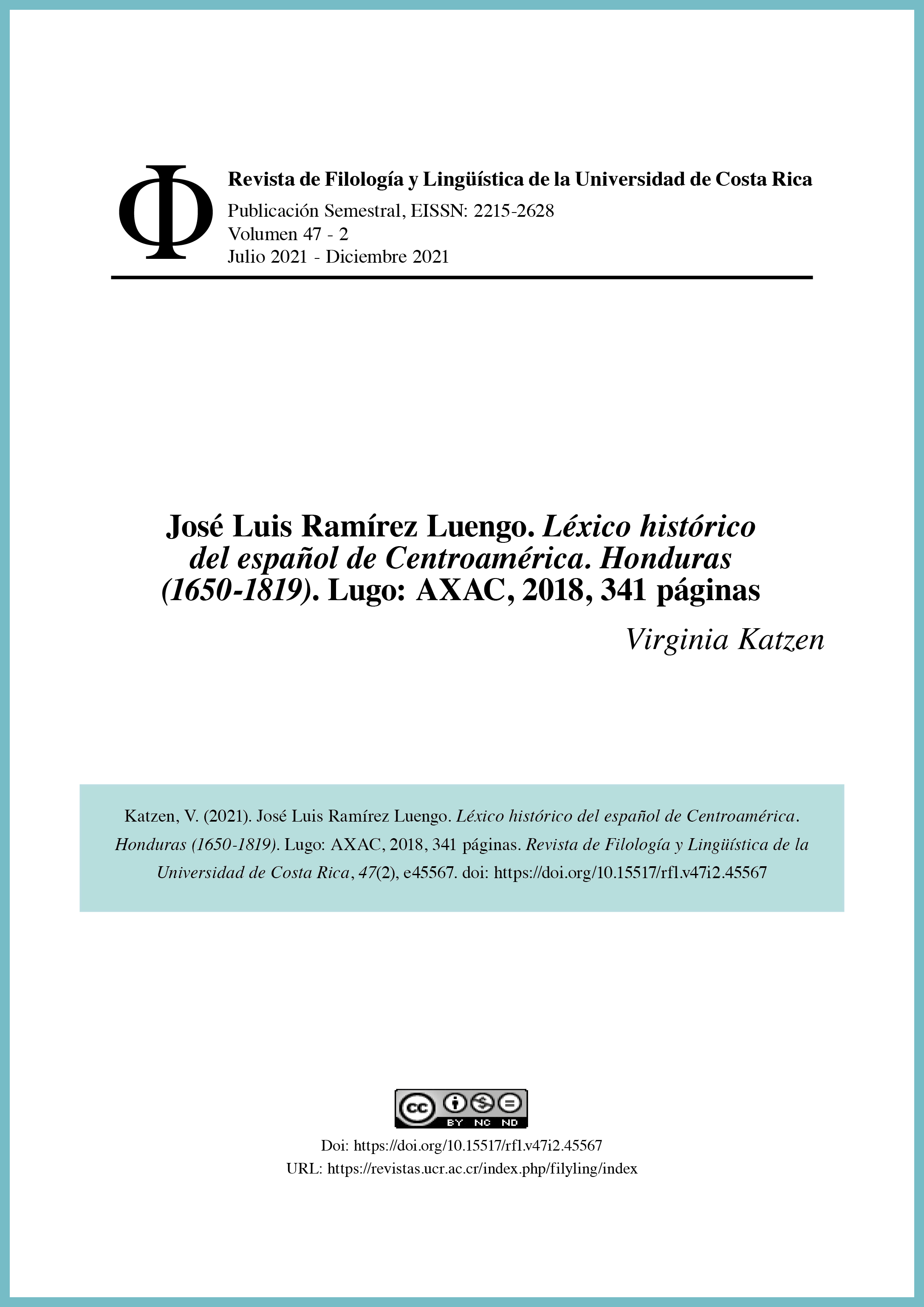 Revista de Filología y Lingüística de la Universidad de Costa Rica, vol. 47, núm. 2, e45567, 2021