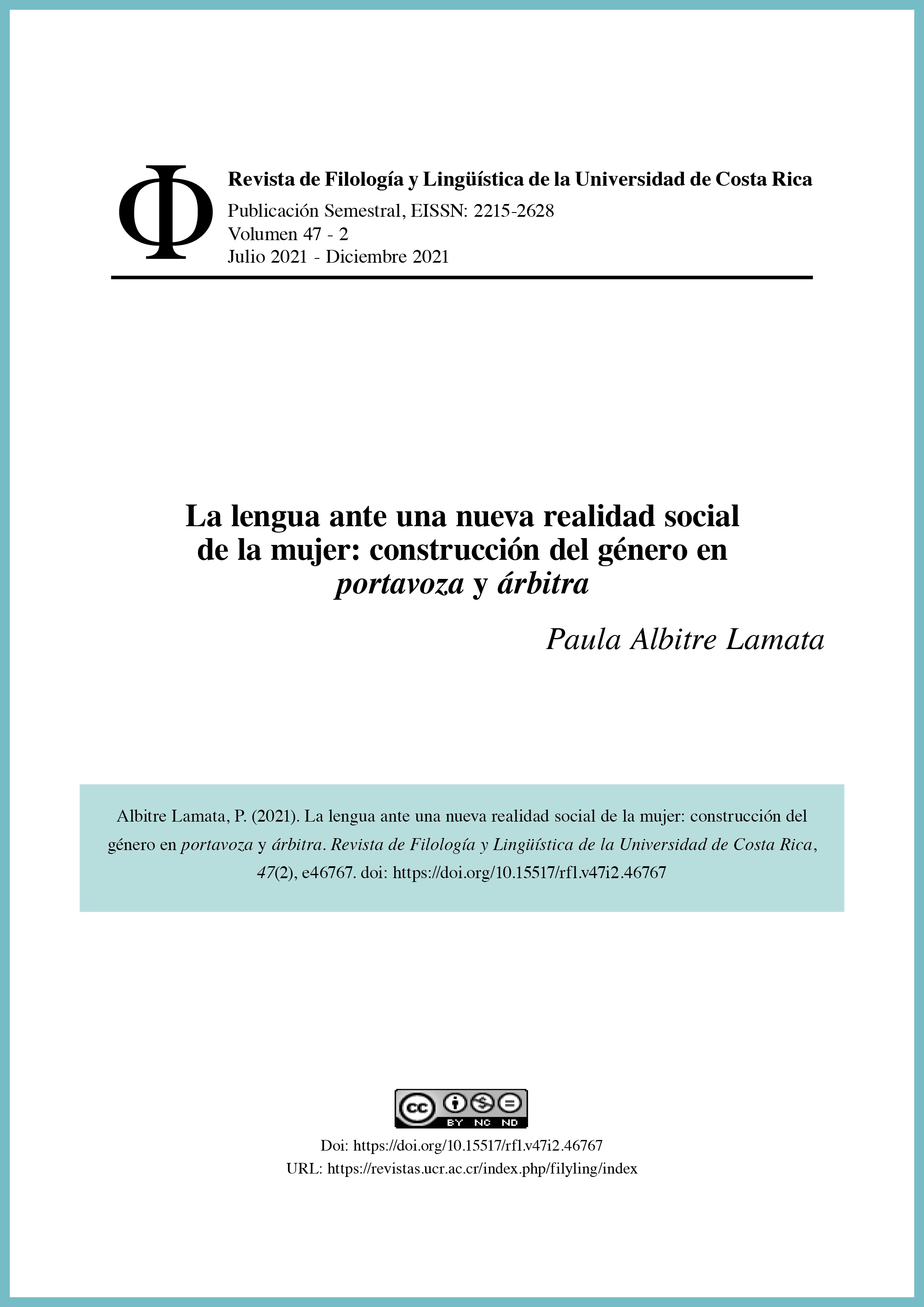 Revista de Filología y Lingüística de la Universidad de Costa Rica, vol. 47, núm. 2, e46767, 2021