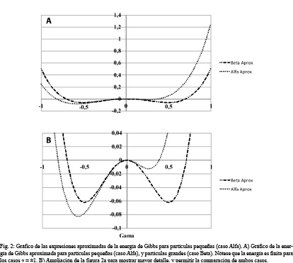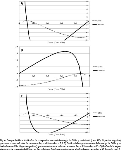 La energía de Gibbs para el caso Beta es simétrica alrededor de γ = 0 pues el término γ + Ln(1 - γ), válido para γ < 0 es idéntico a - γ + Ln(1 + γ), válido para γ > 0. Para el caso del exponente Alfa ni la energía de Gibbs ni su primera derivada presentan una discontinuidad en γ = 0.