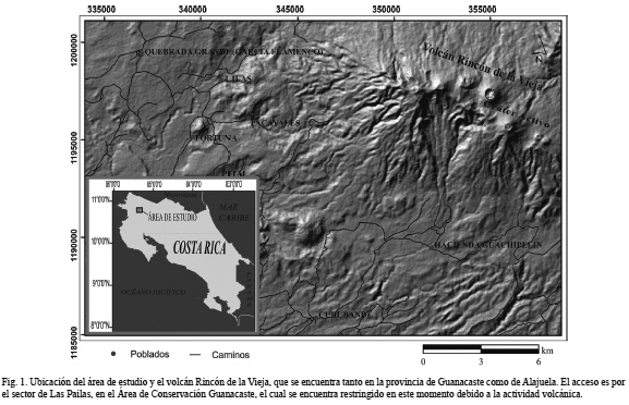 El volcán Rincón de la Vieja es el único volcán históricamente activo de la cordillera de Guanacaste (1700 al 2020), con el edificio eruptivo volumétricamente más grande de (300 km2; 118 km3), el cual posee 9 cráteres en su cima, uno de ellos con actividad eruptiva histórica y prehistórica con un lago hiperácido en su interior (Tassi et al., 2005; Alvarado, 2009). En la ladera sur de este volcán afloran depósitos volcánicos primarios relacionados con el volcán Rincón de la Vieja (suelos de cenizas, caída piroclástica, corrientes de densidad piroclástica diluida), no todos ellos debidamente datados (Fig. 1). En este trabajo se aportan nuevas edades de los principales depósitos muestreados, afinando la cronoestratigrafía previamente propuesta (p. ej., Kempter, 1997; Kempter, Benner, y Williams, 1996; Soto, Alvarado, Goold y Climent, 2003a; Soto, Alvarado y Goold, 2003b) y aportando los posibles periodos de ocurrencia en función del índice de explosividad volcánica. Además, se redefinió la edad de la capa Río Blanco, la cual posee una edad significativamente más reciente que aquella establecida en la literatura e, incluso, dicho lapso se ha tomado como base para los estudios de peligro volcánico. La capa Río Blanco (Kempter et al., 1996), llamada también Tefra Quebrada Grande (Melson, 1988), constituye uno de los eventos explosivos más relevantes durante el Holoceno en la cordillera de Guanacaste, por lo que su cronología es fundamental, no solo para la historia del volcán, sino para la evaluación del peligro volcánico. También, se estableció su correlación temporal con las corrientes de densidad piroclástica presentes en el flanco norte del Rincón de la Vieja.