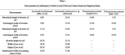 The dentition in ?Pliometanastes galushai is smaller than Zacatzontli cotobrusensis (Table 1, Fig. 5).