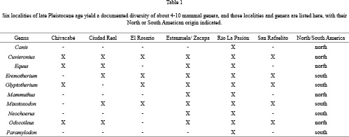 The extant vertebrate fauna of Guatemala is a mixture of endemics that evolved in Guatemala and of descendants of immigrants from both North and South America (e.g., Iturralde-Vinent, 2006; Schuster & Bonis, 2008). However, the fossil record of Guatemalan vertebrates is a record of immigrants, not of any demonstrably endemic forms. There must have been some endemic evolution of vertebrates in Central America during the Pleistocene (Woodburne et al., 2006; Woodburne, 2010), but a fossil record to document that remains elusive. Perhaps the best candidates for endemic evolution are two ground sloth species known only from El Salvador (Webb & Perrigo, 1985). However, there is no evidence of endemism among Guatemala’s late Pleistocene record of fossil mammals.
