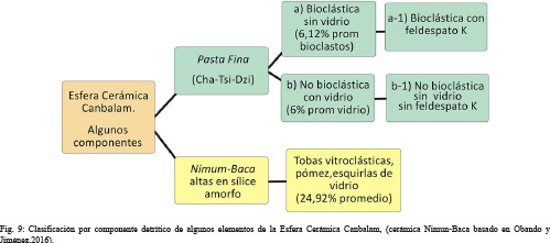 7) Posiblemente existían centros de producción de diferentes tipos de pastas (al menos cuatro tipos en las muestras analizadas) los cuales coexistieron con otros centros que manufacturaron la pasta Nimun-Baca representativa de la esfera cerámica Canbalam.