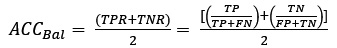 As discussed in the results and apparent in Figure 7, there is generally a strong spatial correlation between areas of high predicted landslide probability and mapped landslides. The statistical comparison shown in Supplementary Materials Table S1 and Figure S7 helps quantify this correlation. Our analysis demonstrates (1) that ~70% and 100% of landslides are located in areas with greater than 20% probability for Cinchona and Limon, respectively, and (2) the relative proportion of landslide-positive pixels systematically increases with probability. This suggests that our model appropriately accounts for landslide vulnerability for these two earthquakes, even if the absolute probabilities do not match the numbers of observed landslides. In order to formally test prediction accuracy, we initially apply a threshold of 50%, where any location with predicted probability 50% and above is considered likely to contain a landslide, and a location with probability below 50% is considered unlikely to contain a landslide. Each landslide inventory contains binary data (landslide positive or negative pixels); using this threshold, we calculate the number of landslide positive pixels correctly predicted by the model as: true positives (TP), incorrectly predicted as false positives (FP), correctly predicted landslide negative pixels (true negatives (TN)), and incorrectly predicted false negatives (FN). We find that there are a significant number of FN pixels when using the 50% threshold for both events. This suggests that this threshold may be arbitrarily high – in other words, that this threshold results in “missing” a significant number of true landslide events. We thus examine the statistical match between predictions and observations using a “balanced accuracy” criterion to identify the optimum threshold for each event, as defined in equation 3, where TPR is the true positive rate and TNR is the true negative rate.