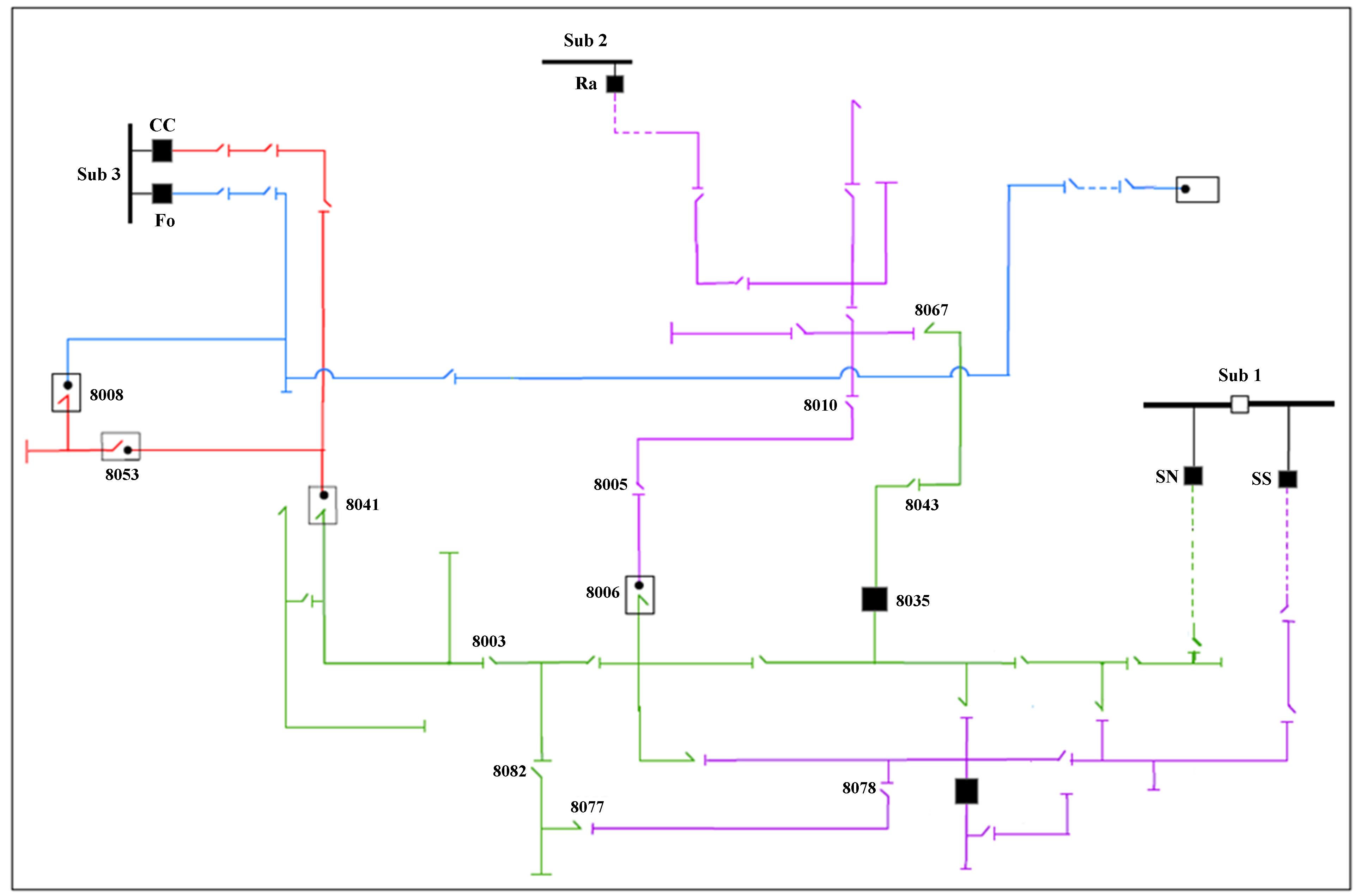 Finalmente, se implementa el programa desarrollado en la zona oeste del área de servicio de la CNFL compuesta por cinco subestaciones y más de 129 millones de topologías posibles. La configuración con las menores pérdidas las reduce en 285 MWh al año representando esto más de 15 millones de colones en ese periodo.Citas