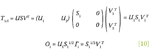 Posteriormente se aplica la descomposición de valores singulares a la matriz de Toeplitz para hallar Oi y Γi de la siguiente forma,