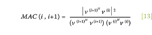 en donde el MAC (criterio de aseguramiento modal) corresponde a un índice que mide el grado de correlación entre dos vectores v que describen la forma modal de la estructura,