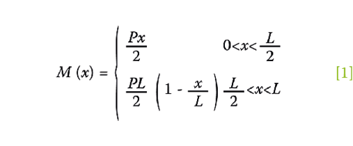 Entonces, si se analiza el punto medio del puente, la línea de influencia del momento flector M está descrita matemáticamente por la expresión