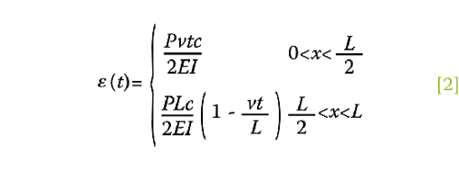 en donde L es la longitud total de la viga. Asumiendo un comportamiento elástico, y que la carga se desplaza a una velocidad constante v, la ecuación anterior se transforma en
