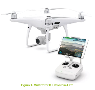 Entre los instrumentos utilizados, como herramienta para la obtención de fotografías aéreas de la zona de estudio se adquirió un multi-rotor de la marca DJI modelo Phantom 4 Pro que se muestra en la Figura 1, el cual consta principalmente de 4 hélices con una cámara de 20 MP, montada sobre un sistema de giroscopio de estabilización que permite mantener la imagen estable independientemente de los movimientos propios del vuelo y las influencias del viento.