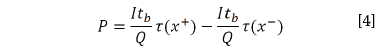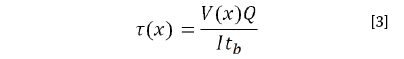 where Q is the first moment of area of the portion delimited by the fiber in consideration and the top fiber, I is the second moment of area of the cross section of the beam, and tb is the thickness of the beam at the location where the shear stress is calculated. Solving for V in equation [3] and substituting in into equation [2] yields