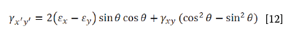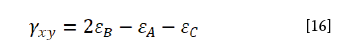 Rearranging Equation [16], the shear strain can be calculated from the rectangular rosette gauges as