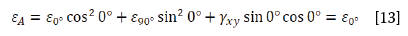 This rosette provide measurements of the normal strains εA, εB and εc. From strain transformation theory (Popov and Balan 2000), it is possible to write