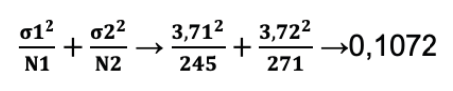 V(x2-x1) = suma de las varianzas = V1+V2, para el caso en estudio se tiene: