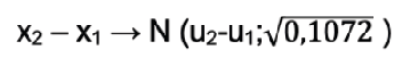 Se define, por tanto, que la diferencia de las medias (indicador de hipótesis), de los dos lotes corresponden a una distribución normal de media poblacional u2-u1 y la correspondiente desviación de los dos lotes: